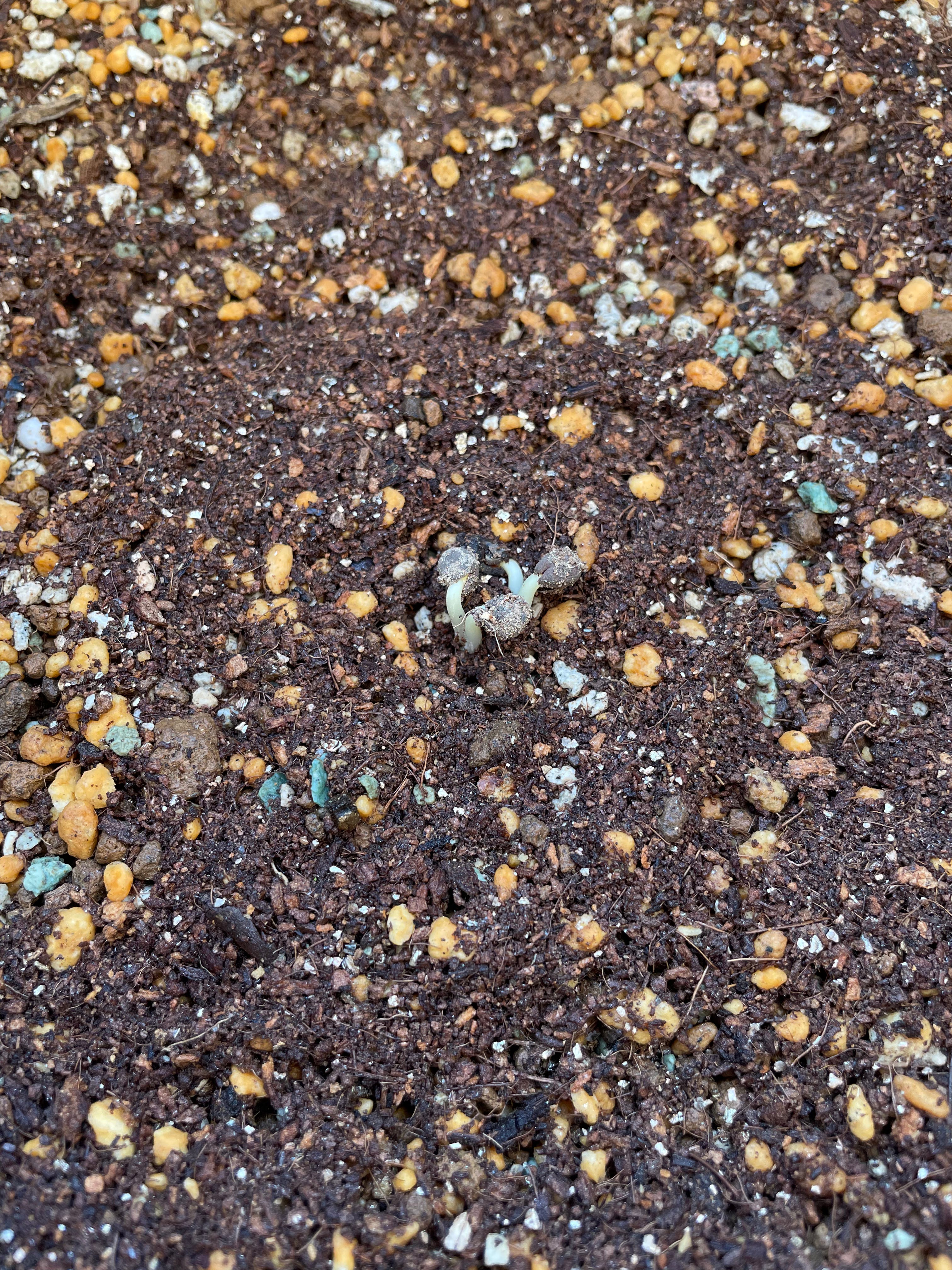 オクラちゃん、とりあえず2つ鉢を用意したんですが、片方だけ芽が出てきました。もう一方は日当たりが不十分だったもよう、ということで移動。果たして。
